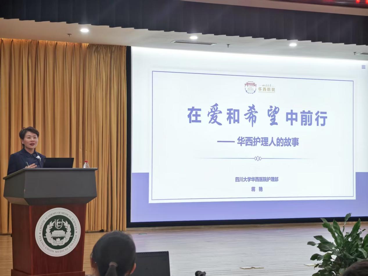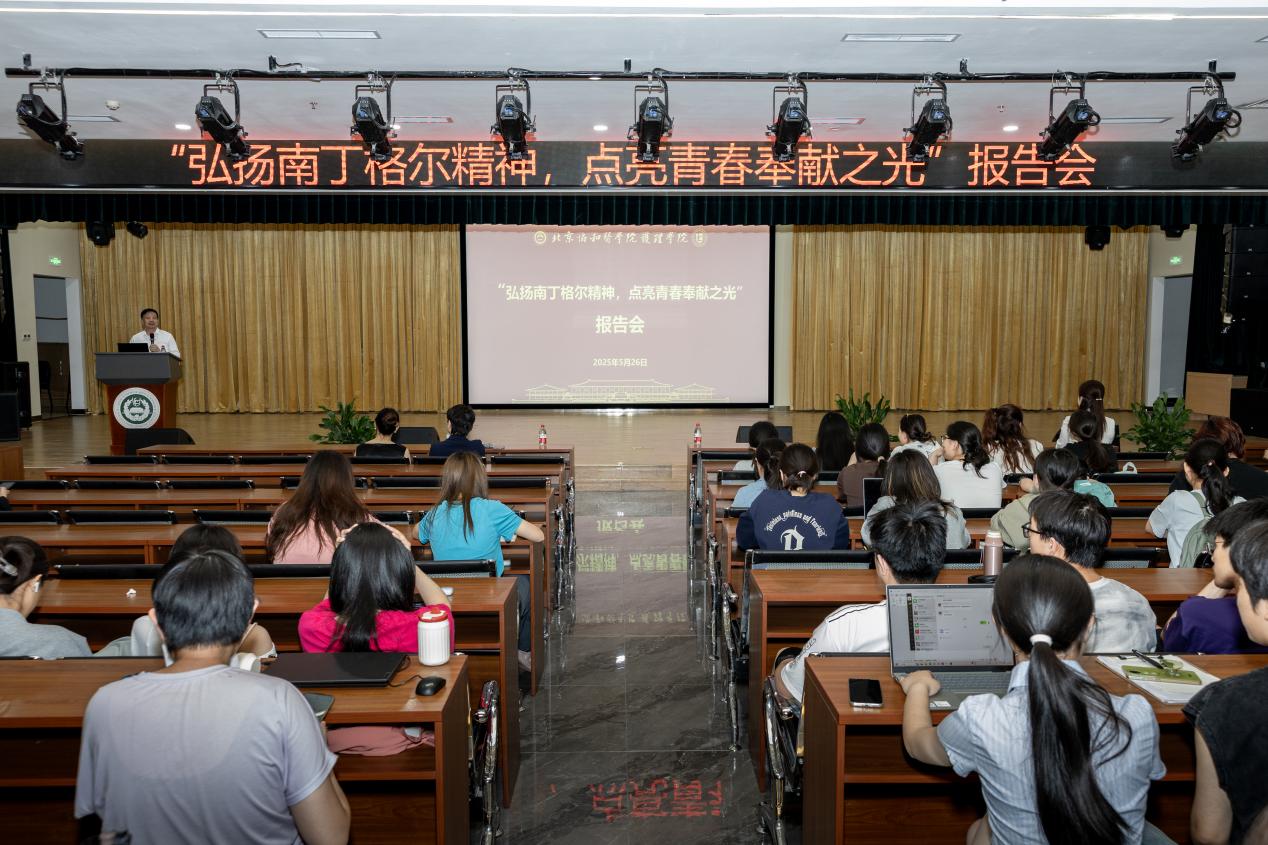 蒋艳教授以深厚的学术功底和丰富的实践经验为师生带来一场精彩纷呈的报告。她从南丁格尔精神的起源讲起,深入浅出地解读人道主义精神的内涵,以博爱托起生命希望的重要性。通过一个个生动的事例,尤其是抗疫亲身经历,展现出护理工作者在关键时刻挺身而出、勇于担当的精神风貌,深深打动在场的每一位同学,现场学习氛围浓厚。安道彩书记以殷切期望勉励全体同学将奉献与担当融入学习生活,将“勤慎警护”的校训牢记心间,用知识服务社会,用行动传递温暖;踔厉奋发、笃行不怠,让南丁格尔精神成为指引前路的明灯。